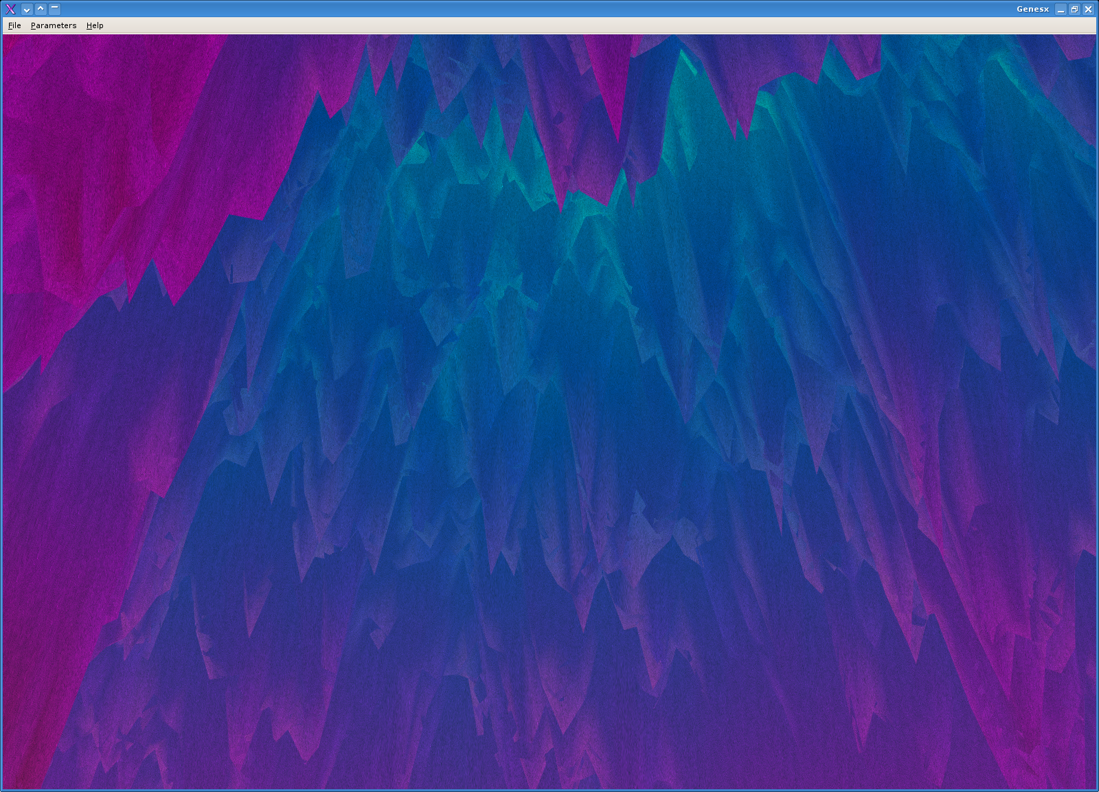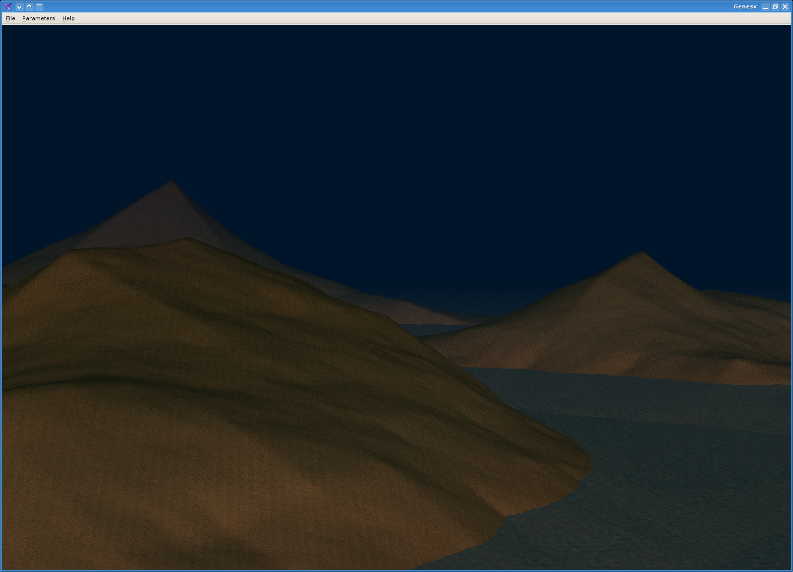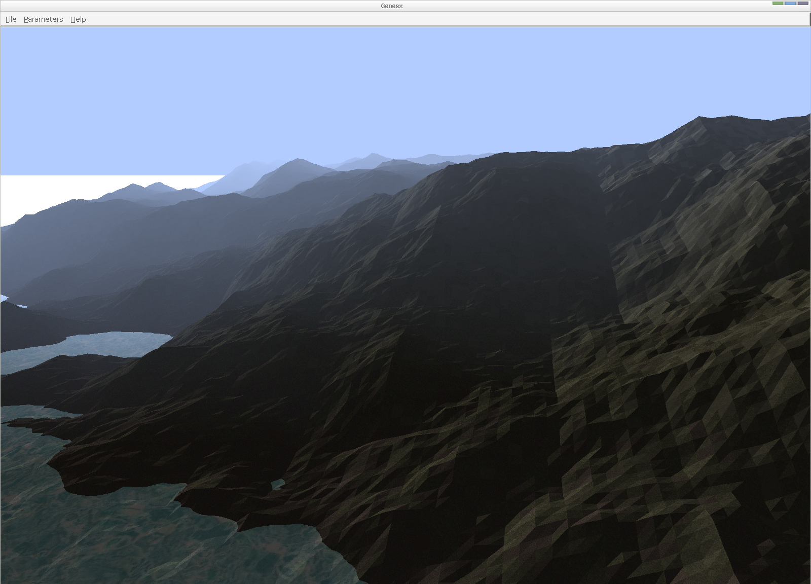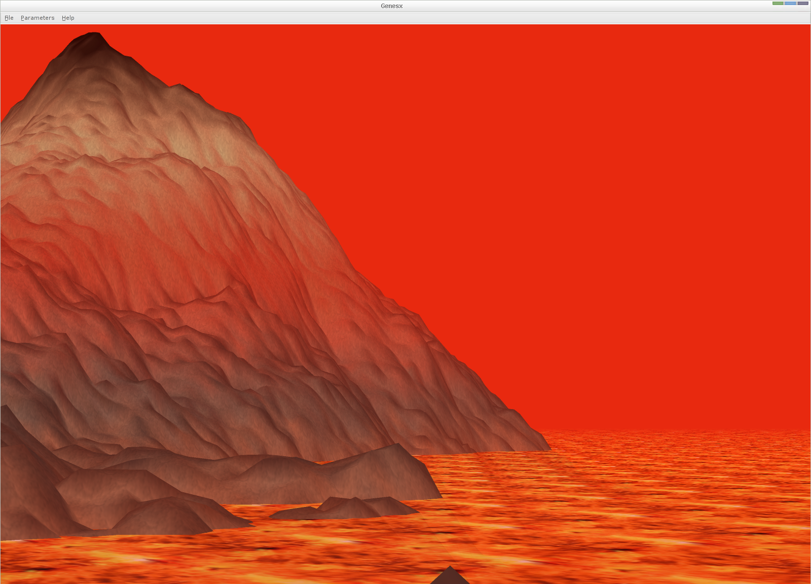 Genesx is a 3D landscape generator written in C with Gtk and OpenGL that I developed during my fourth year at the university. It uses a fractal algorithm to generate random landscapes based on many parameters specified by the user.